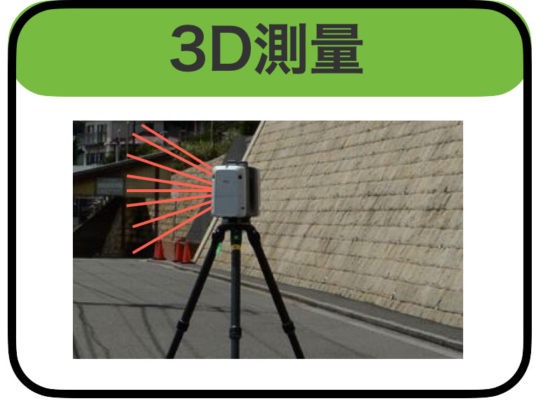 3Dスキャナーで対象物をスキャンし、3Dデータとして取り込むことができる測量です。当社では、Leica RTC360 3Dレーザースキャナーを採用しております。